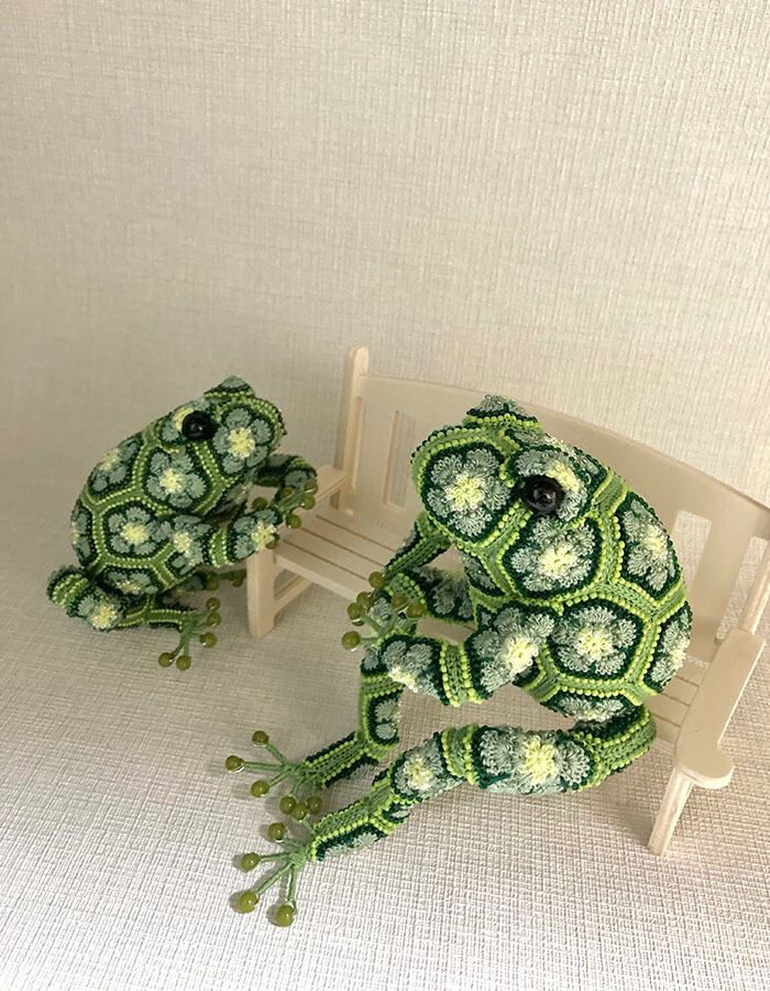気長にモチーフを編み進め、ラブリーなカエルちゃんを編んでみませんか?