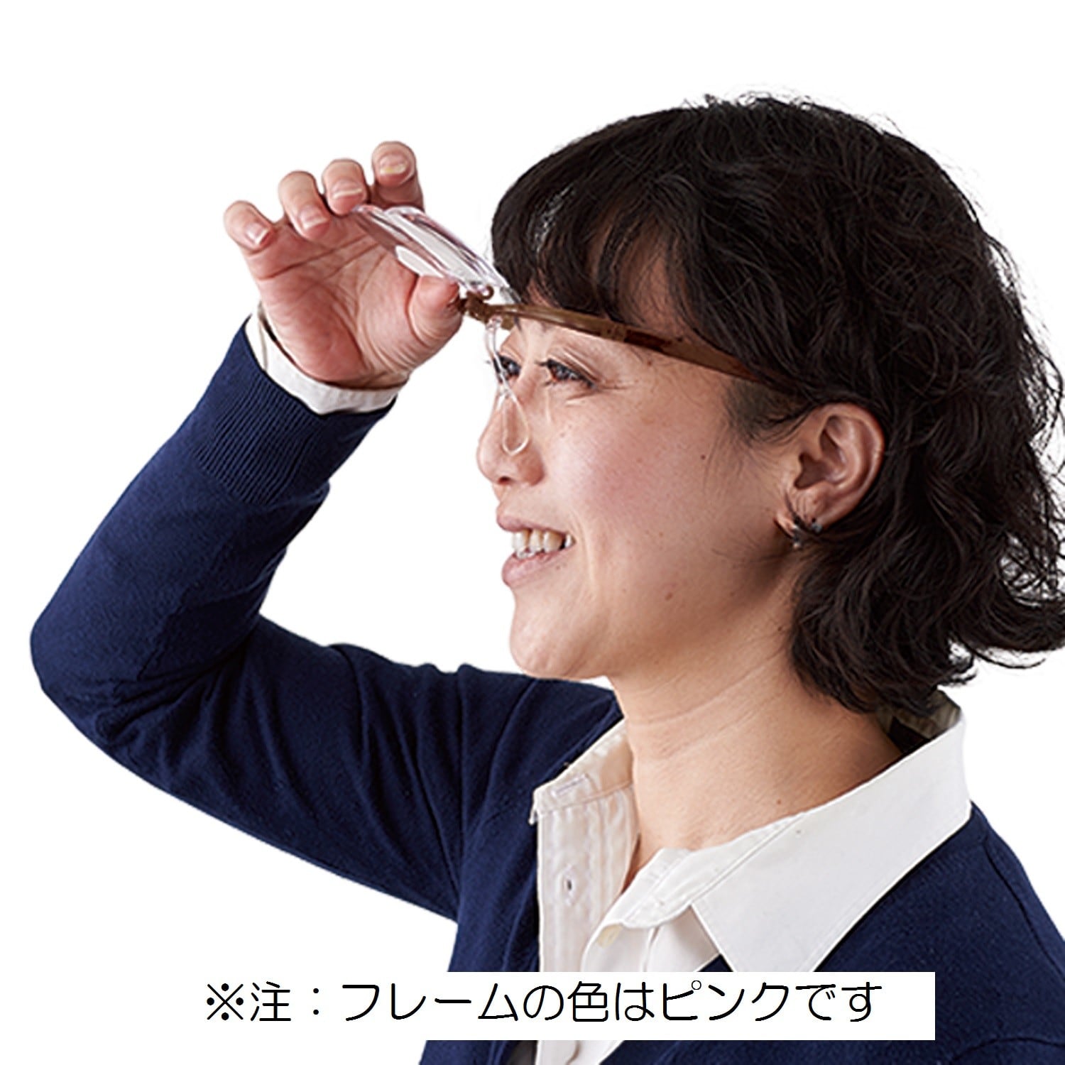手もとが大きく見えて、細かい作業が楽になる、メガネタイプの拡大ルーペ。目立たないフレームなので、メガネ嫌いの方にも抵抗がありません。
